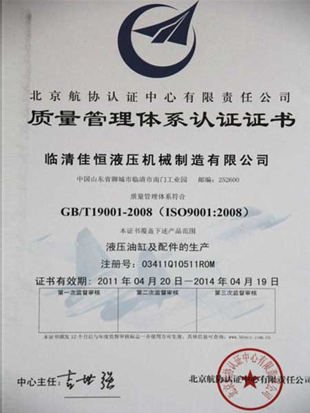 質量管理體系認證證書